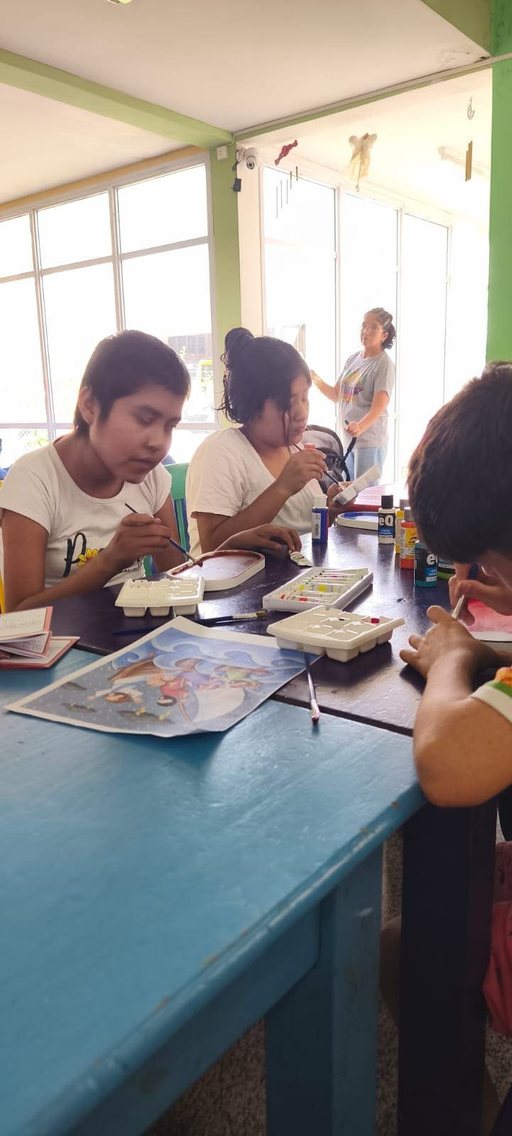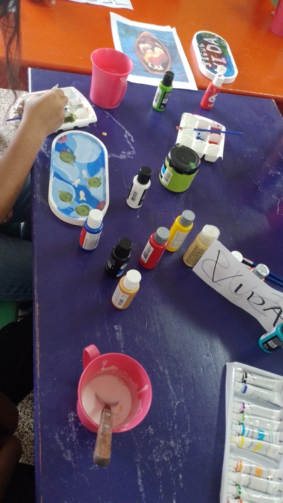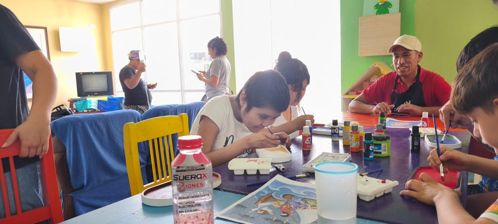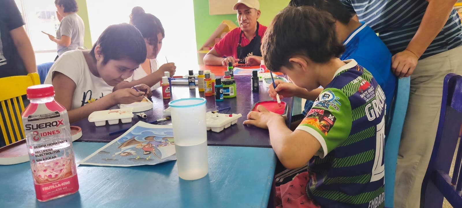 Taller de pintura: los niños pintaron bandejas de yeso y se llevaron su obra como recuerdo, orgullosos de lo que crearon.
